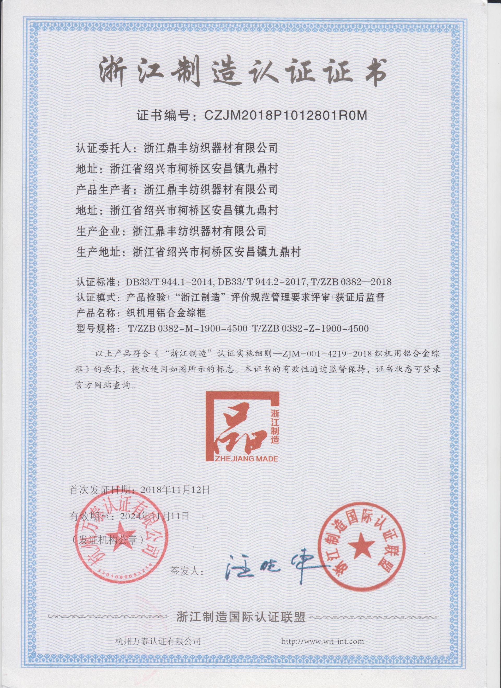 浙江鼎豐紡織器材有限公司始建于1986年,是一家專業(yè)生產各類無梭織機用鋼筘:噴氣筘、噴水筘、劍桿筘、其他類型鋼筘;鋁合金綜框、鋼片綜、停經(jīng)片、經(jīng)軸、織軸、卷布輥等產品及配件的民營企業(yè)。